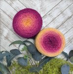 Blossoms are center-pull cakes of joy! Hand-dyed in floral-inspired gradients they are one continuous color-changing knit! The colors magically meld into each other for a seamless color transformation.
